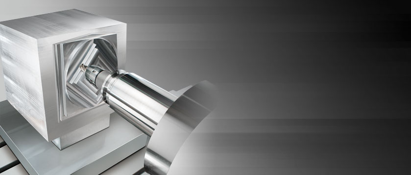 旋轉工作臺采用高精度液靜壓軸承,工作臺最大荷重 4,000 kg,B 軸定位精度可達 0.001°