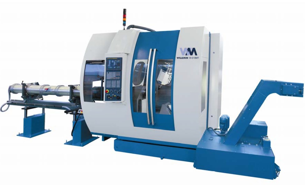 518MT加工中心可配備多種自動(dòng)系統(tǒng),自主操作性極強(qiáng),尤其適用于棒給和零件的裝卸。通過一個(gè)棒料進(jìn)給裝置或一個(gè)棒料供應(yīng)系統(tǒng),棒料可裝入A軸分度盤。 可配備各種裝置的518MT加工中心,其超強(qiáng)的靈活性可以裝載長/短棒料,棒料的直徑可達(dá)65mm,各種裝卸系統(tǒng)可用于卸載成品零件。為了進(jìn)一步加強(qiáng)機(jī)床 的自動(dòng)性,威力銘-馬科黛爾公司可在機(jī)床上配備一支萬能操作臂,用于裝載和移動(dòng)零件至/從庫區(qū),也可用于卸載棒料邊角料。威力銘-馬科黛爾公司可根據(jù)客戶 需求提供特殊的解決方案。