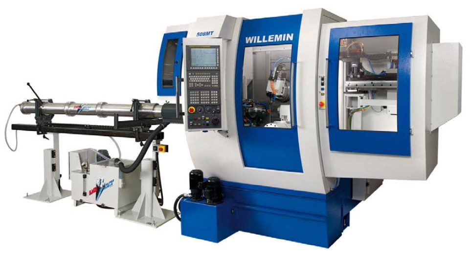 508RnT一多工序加工中心 威力銘-馬科黛爾公司在設計方面的長期傳統理念既能保證508MT加工中心的超高精度,又使該機床擁有無可比擬的柔性,通過-次裝夾卉在同-加工循環內完 成復雜零件的六面體的加工。所采用的高性能電主軸尤為適合高需求的加工應用。高精度臥式軸/分度頭具有雙重功能,低速運轉時猶如一分度頭,而高速運轉時即 是一個車削主軸。機床可配各-帶有三工位塔座的多工位背面加工裝置。 機床結構 ■擺動式主軸 ■高強度的鑄鐵床身,帶加強筋板,進一步保證了機床的最佳動態和靜態剛性. ■為降低結構熱脹,采用隔離鋼板將機床的機械區域與加工區域徹底分開。 ■機床的主結構以及外圍輔助設備均衡地安裝在框架上, ■該結構確保超高精度的加工需求, 各軸的行程: X=450mm Y=200mm Z=425mm A=360° /s2=6`000rpm B=-15° /+100° C=360° /S3=6`000rpm U=300mm W=360° |